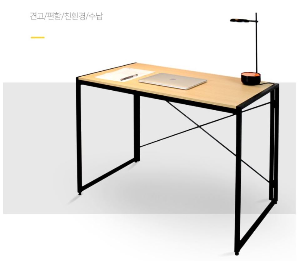 조립이 필요없이 접었다 폈다하는 컴퓨터 책상은 1인가구나 원룸에 적합할 것입니다. 특히나 접이식 책상은 주거 공간이 부족한 분들에게 아주 현실적인 대안이 될 수 있을 것입니다. 30초면 조립이 가능할 뿐만 아니라, 높낮이 조절 나사가 있어 삐뚤삐뚤 흔들리는 책상을 방지할 수 있습니다. 원목 상판과 철제 프레임을 넣었다 뺐다, 간단하게 조작할 수 있습니다.